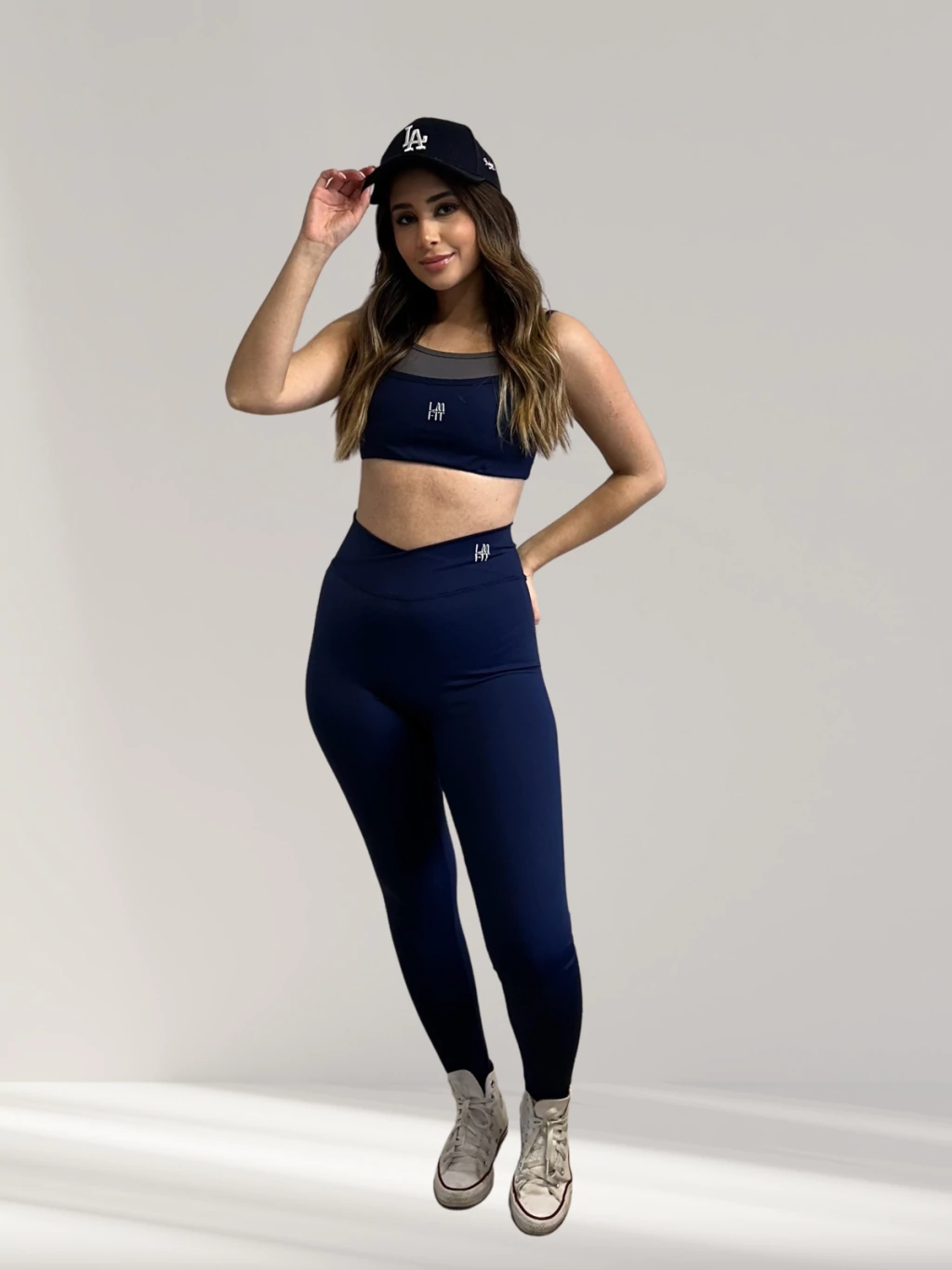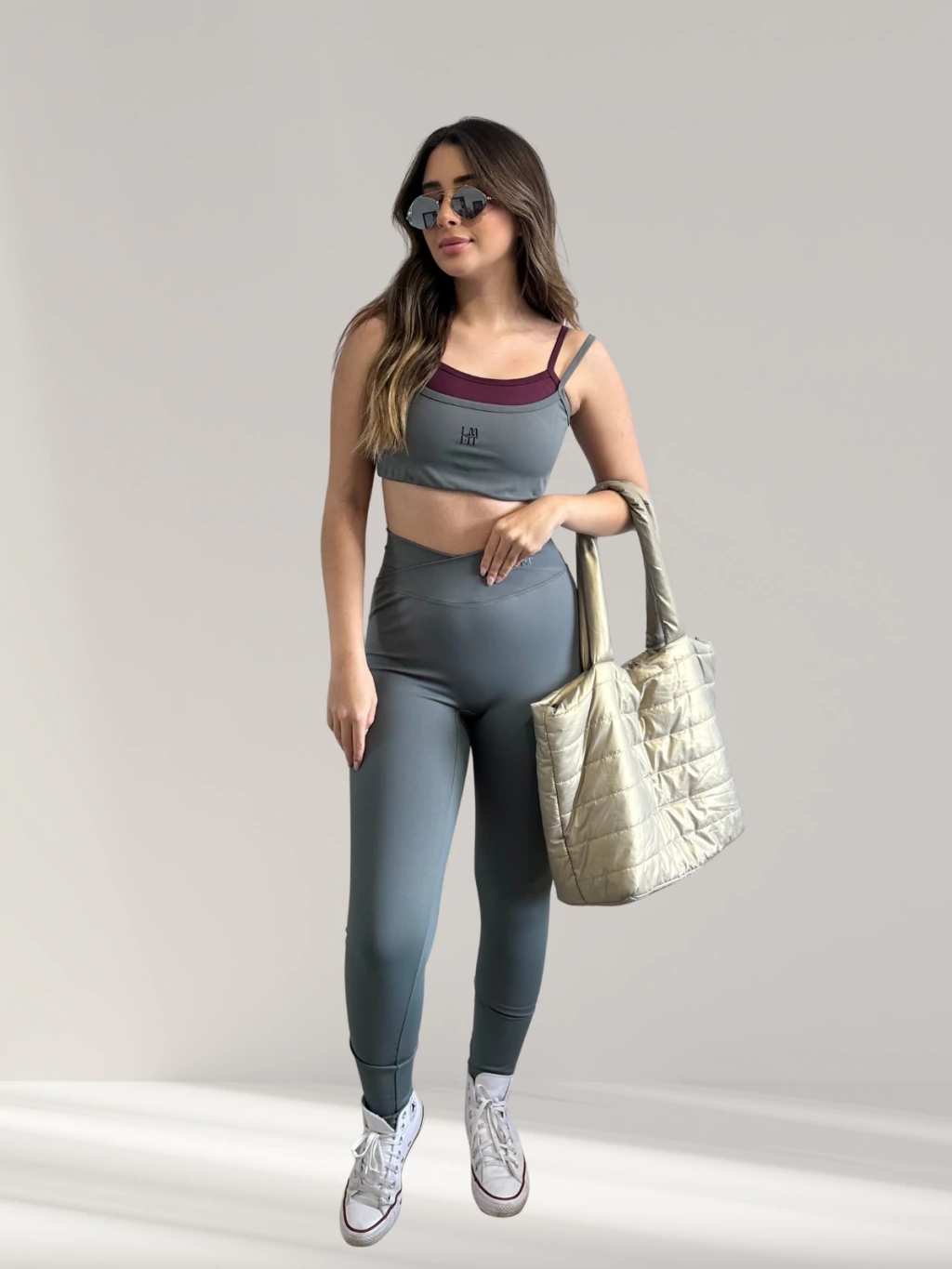 Composto por um top duplo de alças finas, sem bojo, que garante liberdade e sustentação leve, e uma legging de cós alto com detalhe trançado na frente, que afina a cintura, além do cós em V nas costas, que valoriza o bumbum e desenha o corpo com perfeição.