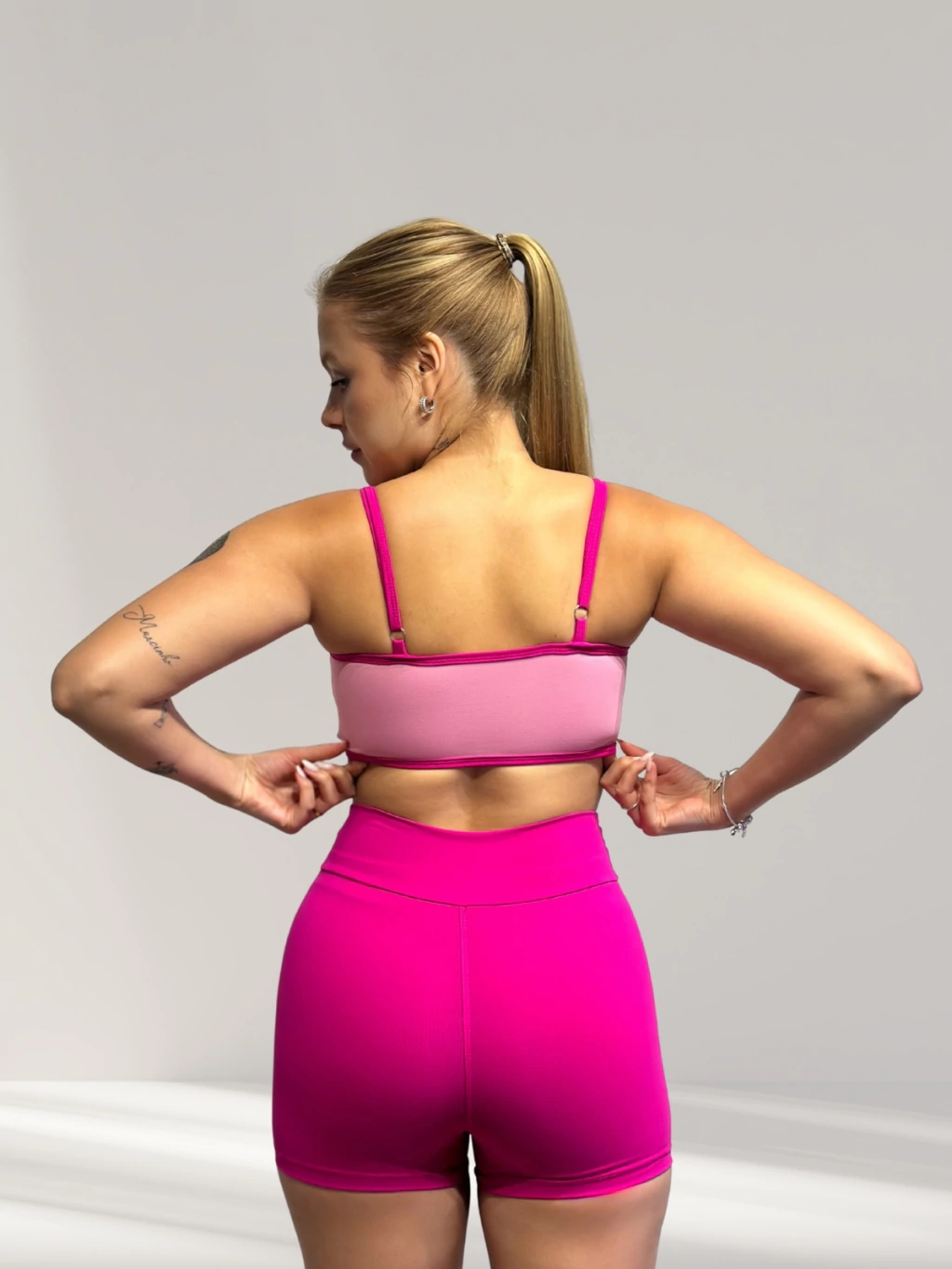 Combo 3 em 1: Conjunto super versátil com top, short e cropped de manga longa.