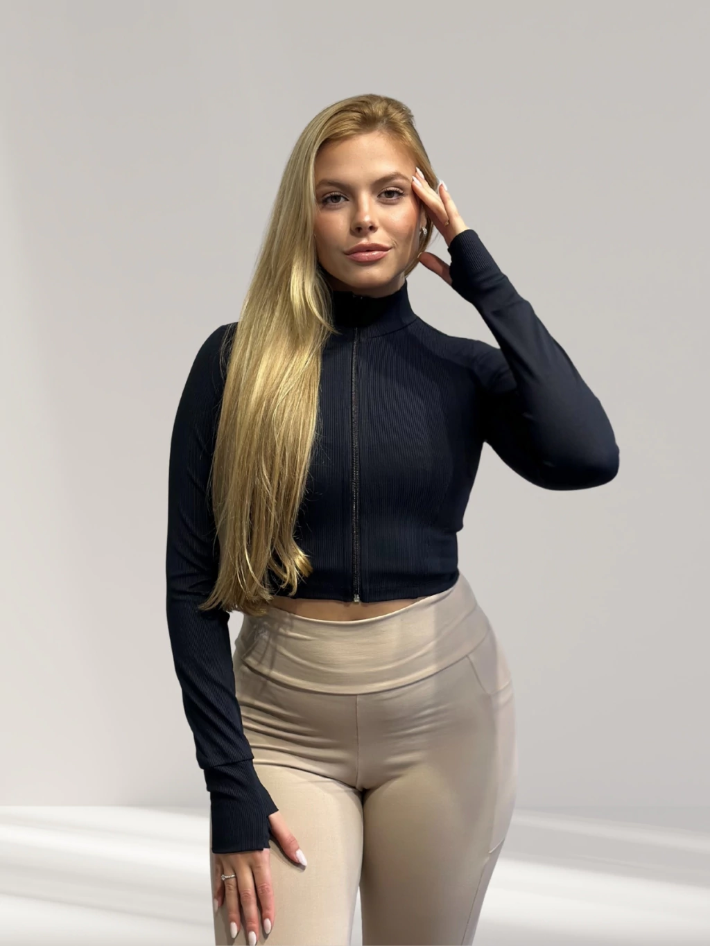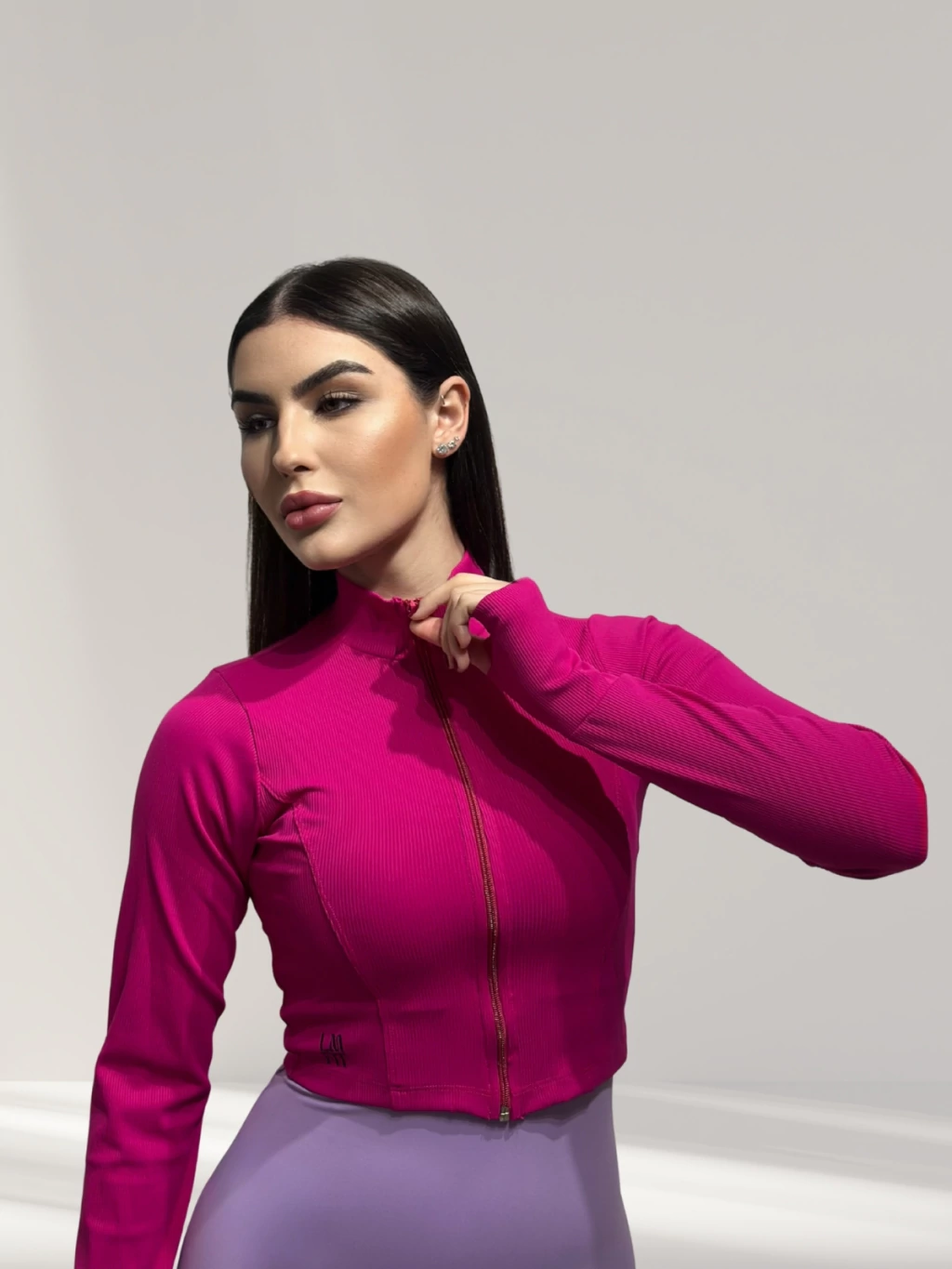 A Jaqueta Lyah é a peça-chave que vai elevar seu visual fitness e casual. Com uma modelagem cropped que se ajusta perfeitamente ao corpo, ela foi desenhada para valorizar a silhueta, unindo o conforto da malha canelada com um design moderno e cheio de personalidade.