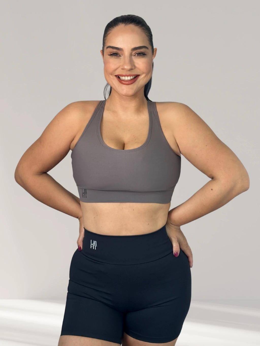 O Top May é aquele básico indispensável no closet fitness. Sem bojo e com modelagem firme, oferece conforto e liberdade total nos treinos. Feito em tecido de poliamida premium, tem toque macio, alta elasticidade e caimento perfeito. Ideal para quem busca sustentação leve e estilo minimalista.